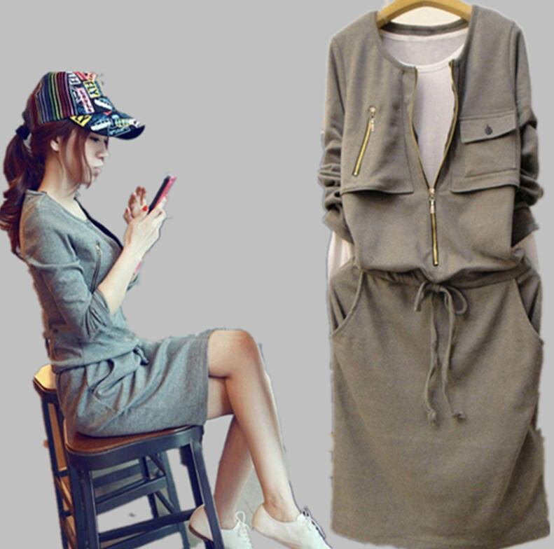 【送料無料】ワンピース 長袖 春 ゆったり 大きいサイズ 体型カバー カジュアル 大人 シンプル 着回し 無地 20代 30代 40代 グレー ブラック BY-157