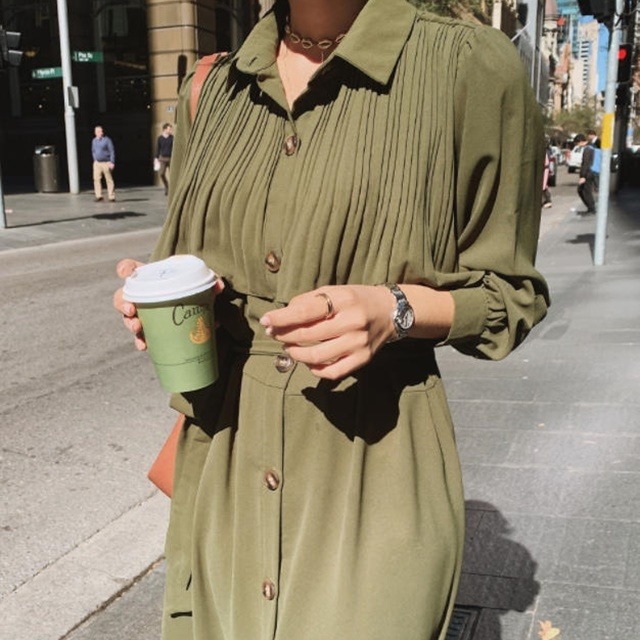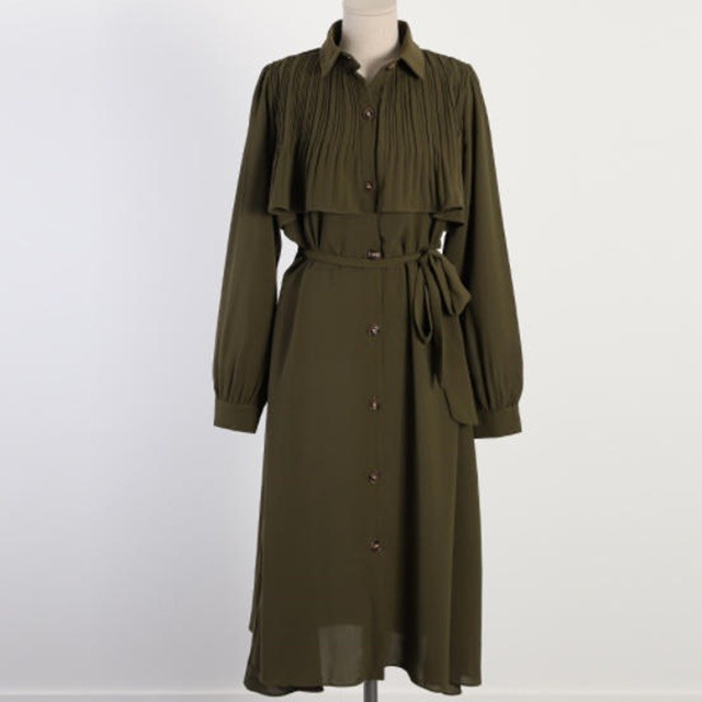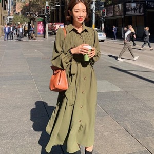 【送料無料】ワンピース 長袖 きれいめ プリーツ ハイウエスト フレア Aライン 大人 上品 カジュアル レトロ おしゃれ 20代 30代 40代 カーキ ブラック レッド BY-165