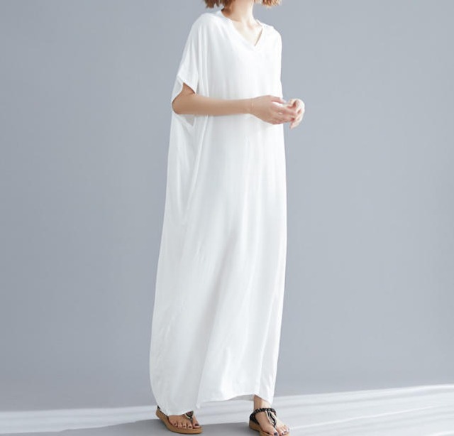 【送料無料】ワンピース 春夏 ロング マキシ丈 オーバーサイズ 大きいサイズ ゆったり 半袖 大人 カジュアル シンプル ベーシック ブラック ブルー レッド ワイン イエロー ベージュ ネイビー ホワイト BY-169