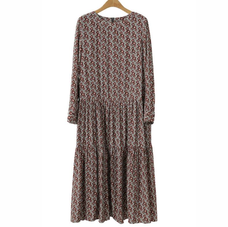 【送料無料】ワンピース 長袖 大きいサイズ ロング レトロ かわいい マキシワンピース フレア ティアード 大人 上品 カジュアル おしゃれ 個性的 30代 40代 ネイビー BY-172
