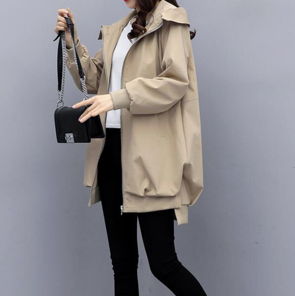 【送料無料】ウィンドブレーカー ジャンパー マウンテンパーカー アウター 大きいサイズ フード付き 長袖 ゆったり 無地 カジュアル シンプル 大人 30代 40代 50代 ベージュ ブラック BY-182