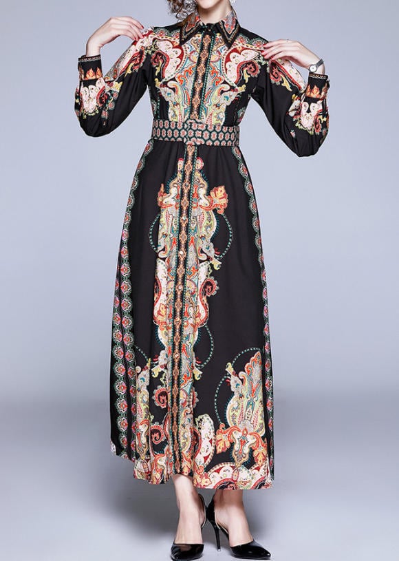 【送料無料】ワンピース 長袖 きれいめ ロング マキシ丈 ハイウエスト ヴィンテージ レトロ 大人 上品 個性的 お呼ばれ 結婚式 同窓会 演奏会 30代 40代 50代 ブラック BY-191