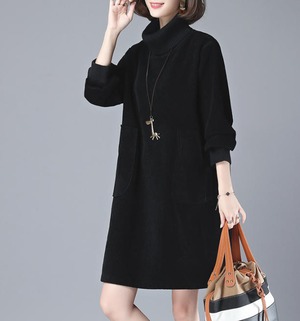 【送料無料】チュニック 長袖 大人可愛い チュニックワンピース 裏起毛 ハイネック あったか Aライン 体型カバー フレア 30代 40代 50代 ブルー ブラック ブラウン BY-194