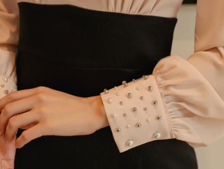 【送料無料】ワンピース 長袖 きれいめ 春 ひざ丈 ハイウエスト ペンシルスカート スリット パール 大人 上品 お呼ばれ フォーマル 30代 40代 ベージュ ブラック BY-202