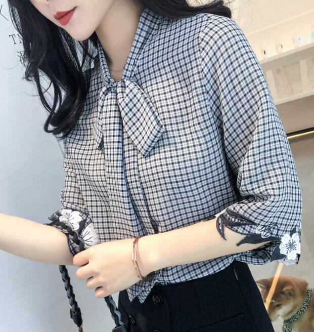 【送料無料】ブラウス フォーマル オフィス シャツ ボウタイブラウス 大きいサイズ 五分袖 春 レトロ 大人 上品 おしゃれ 30代 40代 ブラック BY-214