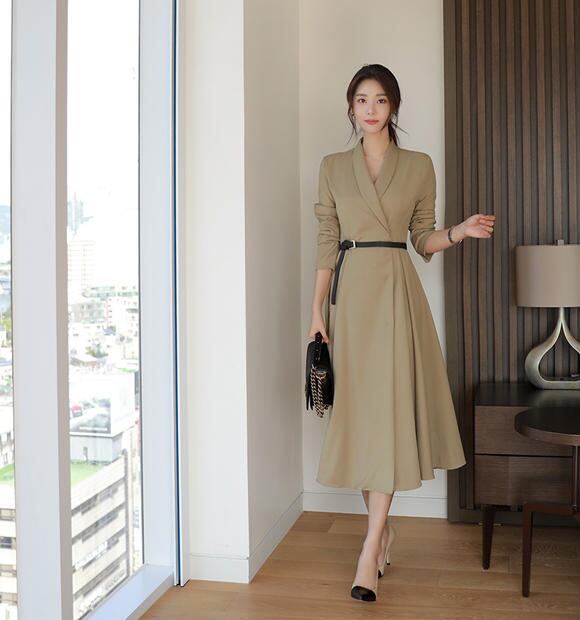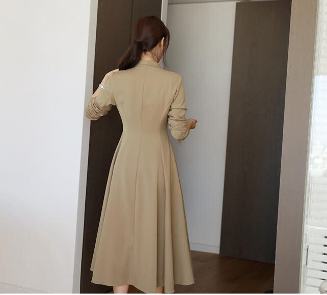 【送料無料】ワンピース 長袖 きれいめ 春 フレア Aライン ハイウエスト きれいめ エレガント 大人 上品 シンプル 30代 40代 ベージュ BY-229