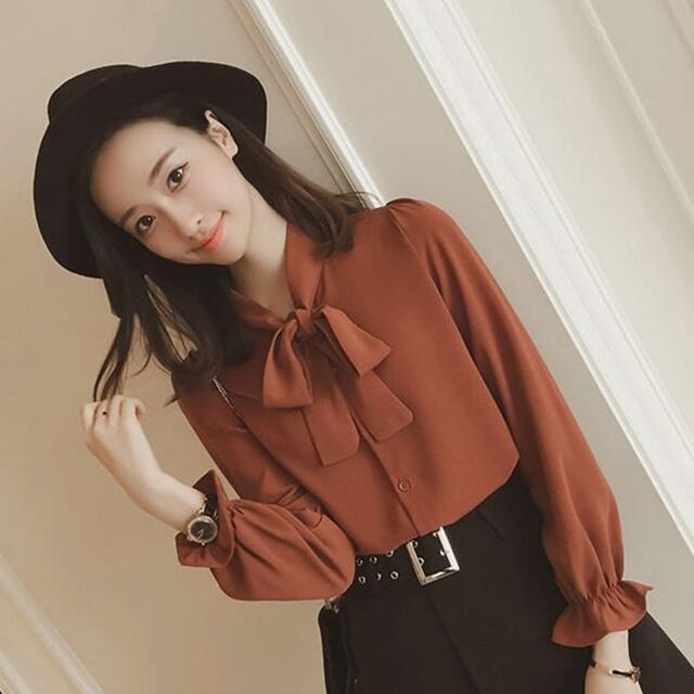 ボウタイデザインのレトロなブラウス♪