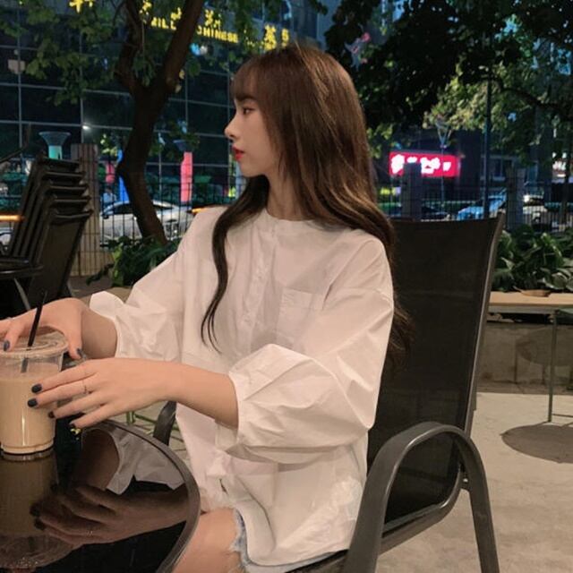 【送料無料】ブラウス フォーマル シャツ オフィス トップス ノーカラー パフスリーブ 長袖 ゆったり 大人 シンプル ベーシック 可愛い 上品 30代 40代 ホワイトBY-255