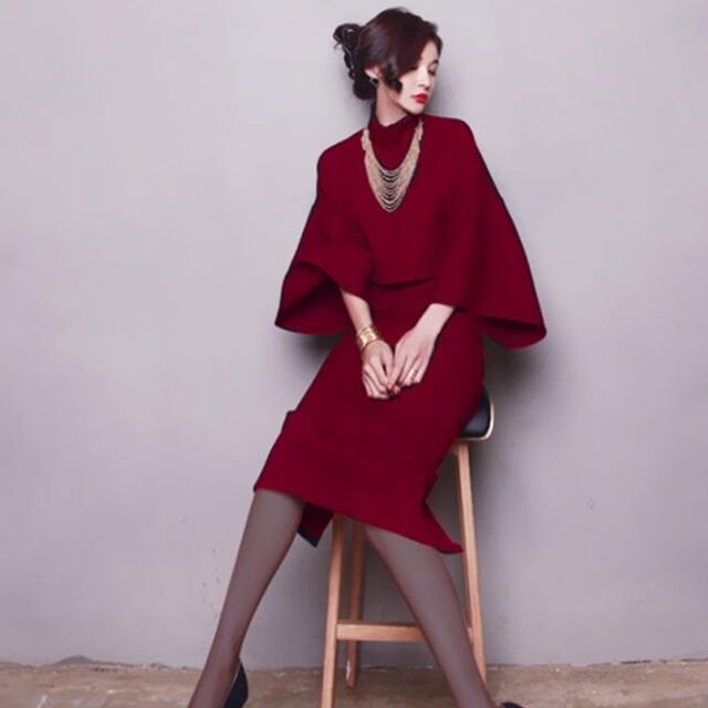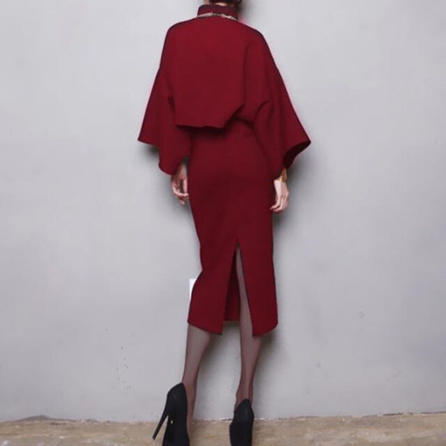【送料無料】セットアップ おしゃれ 大きいサイズ タイトスカート ハイウエスト トップス ドルマンスリーブ スリット ゆったり 大人 上品 エレガント シンプル フォーマル 30代 40代 50代 レッド ブラック グレー BY-287