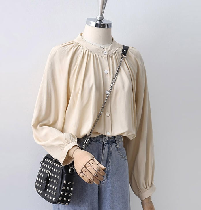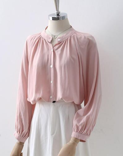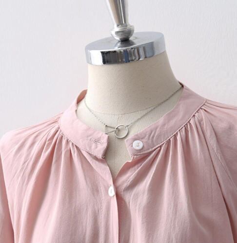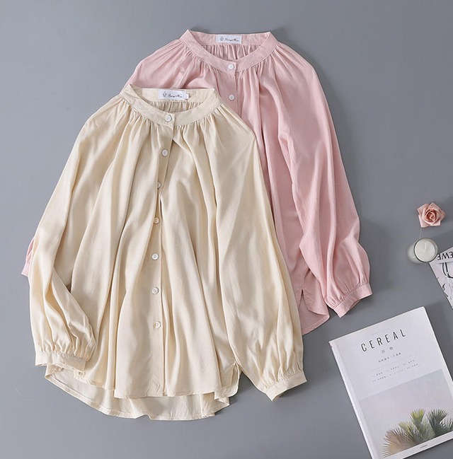 【送料無料】ブラウス トップス きれいめブラウス フォルム スカラップ ゆったり 長袖 レトロ カジュアル シンプル 大人 上品 きれいめ 30代 40代 ベージュ ピンク BY-314