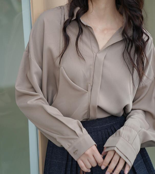 【送料無料】ブラウス トップス きれいめブラウス フォルム シャツ ゆったり 長袖 レトロ カジュアル シンプル 大人 上品 きれいめ 30代 40代 ブラウン BY-315