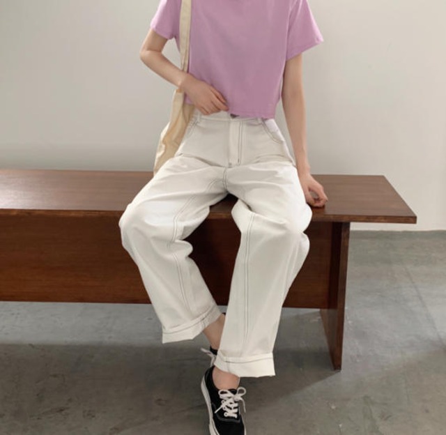 【送料無料】デニムパンツ ワイドパンツ ロング ハイウエスト 着痩せ 裏地 透けにくい ゆとりシルエット 上品 大人 カジュアル シンプル ベーシック 30代 40代 ホワイト BY-327