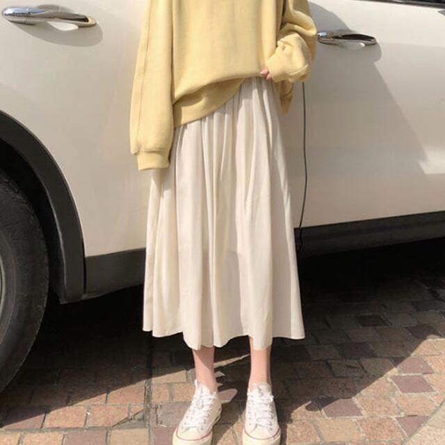 【送料無料】プリーツスカート ロング ハイウエスト ストレスフリー ゆったり カジュアル きれいめ 上品 大人 シンプル ベーシック 30代 40代 ホワイト BY-332