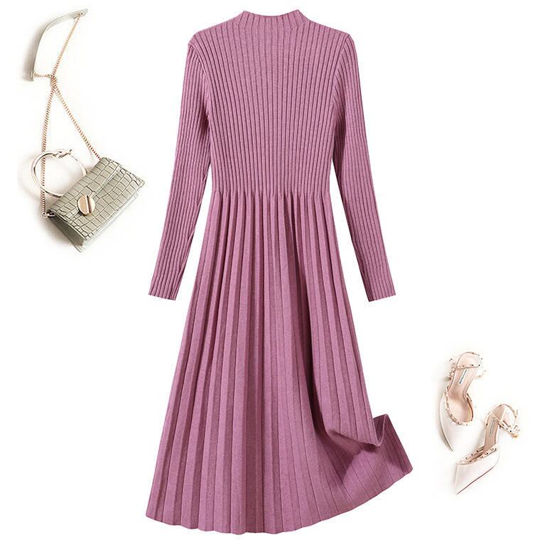 【送料無料】ニットワンピース ロング フレア Aライン ハイウエスト きれいめ 上品 シンプル フェミニン 女らしい 優しい 春カラー 30代 40代 ピンク ブラック ブルー イエロー ホワイト BY-333