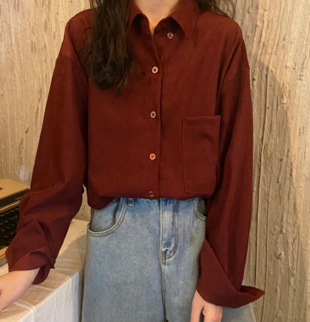 【送料無料】シャツ ブラウス トップス 可愛い 大人っぽい 大人 上品 カジュアル シンプル ベーシック ゆったり 30代 40代 ブラウン ピンク ホワイト オレンジ ブルー レッド BY-338