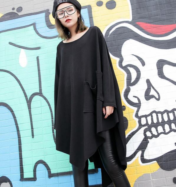 【送料無料】チュニック ブラウス シャツ 春 アシンメトリー 大人 ゆったり カジュアル シンプル おしゃれ 30代 40代 50代 ブラック BY-399