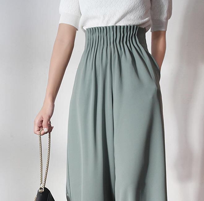 【送料無料】ワイドパンツ きれいめ 春 フォーマル くすみカラー ハイウエスト 脚長 大人 上品 エレガント シンプル ベーシック 30代 40代 50代 グリーン BY-409