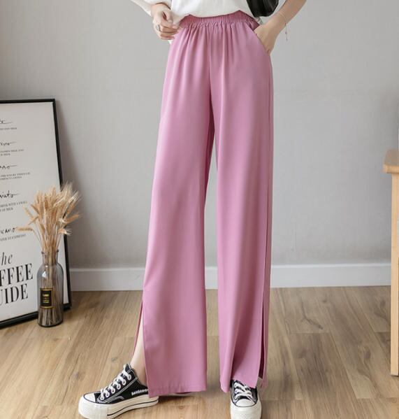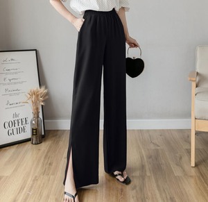【送料無料】ワイドパンツ きれいめ 春 フォーマル くすみカラー スリット ゴム ハイウエスト 脚長 大人 上品 エレガント シンプル ベーシック 30代 40代 50代 ホワイト ブラック ピンク パープル グリーン BY-410