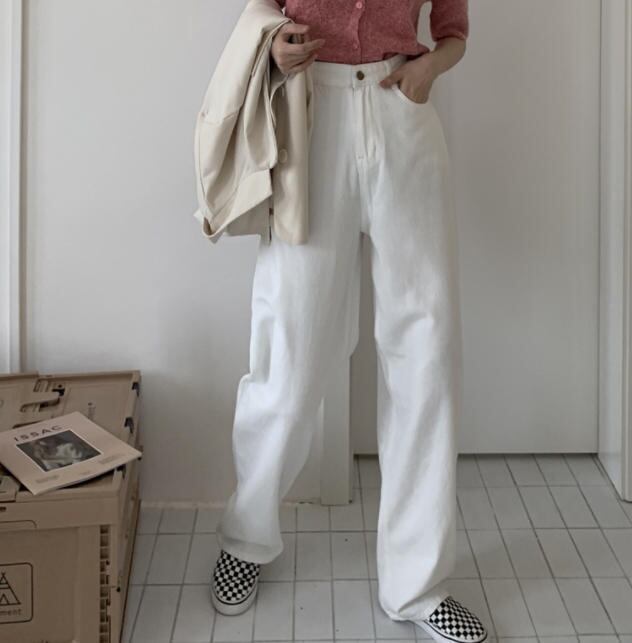 【送料無料】ワイドパンツ デニムパンツ 春 きれいめ ストレート 高見え ホワイトコーデ ハイウエスト 脚長 大人 上品 カジュアル シンプル ベーシック 30代 40代 50代 ホワイト ブラック BY-413