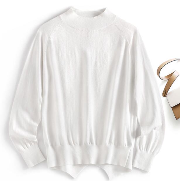 【送料無料】ニット トップス 春 長袖 スリット 大人 上品 ラウンドネック ゆったり 無地 シンプル カジュアル ベーシック 30代 40代 50代 ホワイト ベージュ BY-427