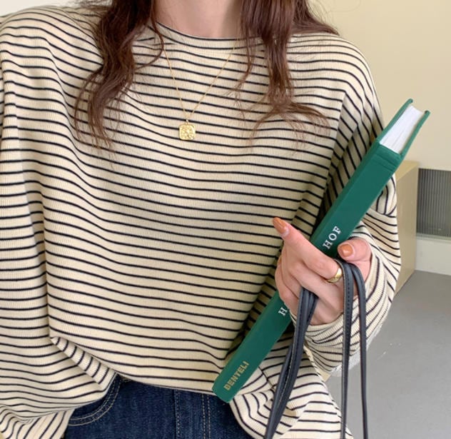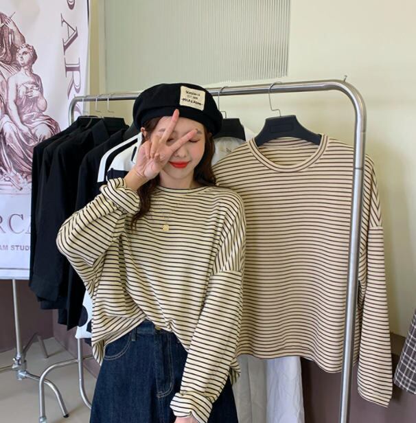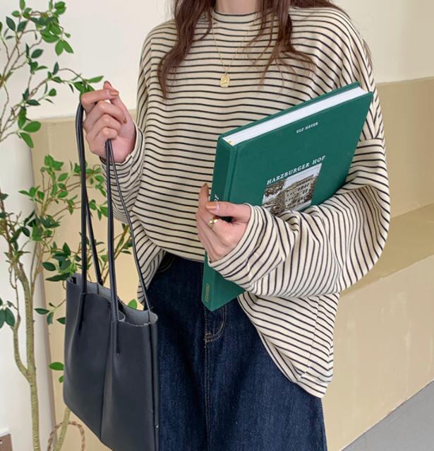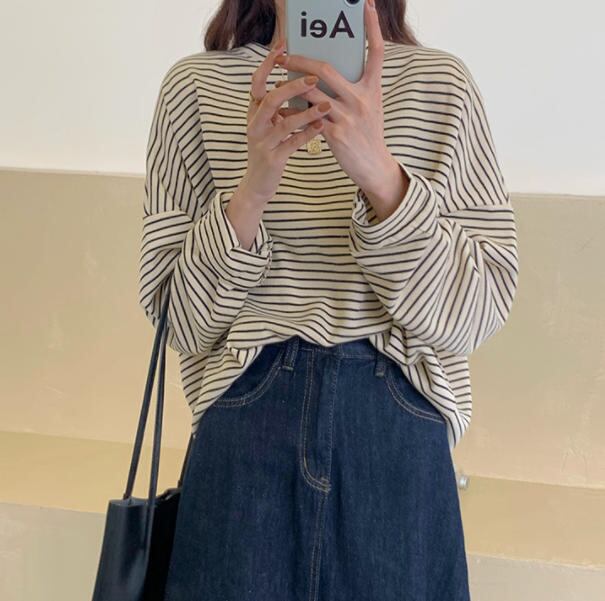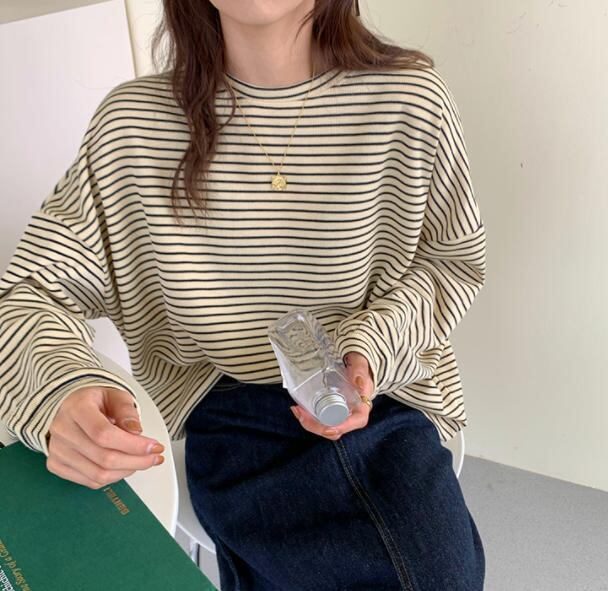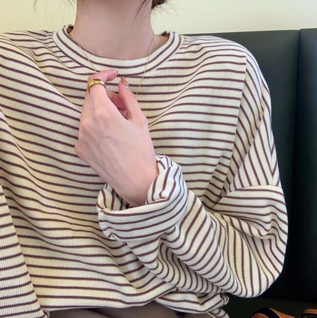 【送料無料】ロングTシャツ 大きいサイズ トップス カットソー ボーダー ビッグシルエット ゆったり 着痩せ 大人 カジュアル レトロ ベーシックアイテム 30代 040代 50代 ブラウン ブラック BY-430