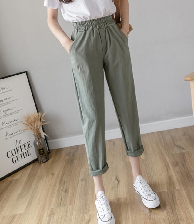 シンプルなデザインで着回しできるロングパンツ♪