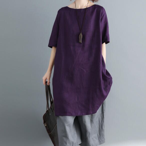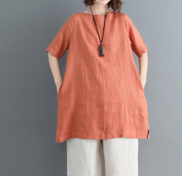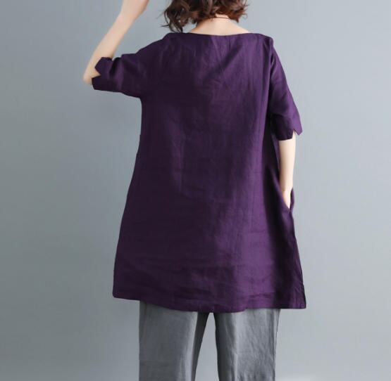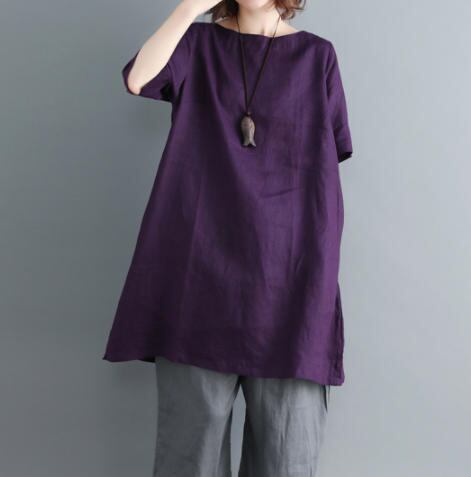 【送料無料】リネン スクエアネック トップス Tシャツ チュニック 大きいサイズ 半袖 ナチュラル 大人 上品 カジュアル シンプル 30代 40代 パープル オレンジ ホワイト BY-454