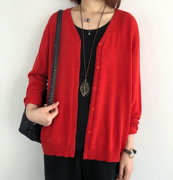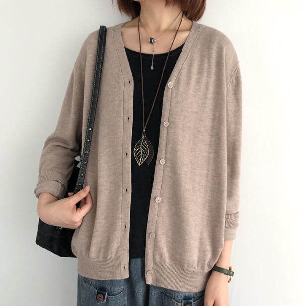 【送料無料】カーディガン 春 ノーカラー トップス ゆったり 無地 カジュアル シンプル 大人 体型カバー グレー レッド ブルー ブラウン ベージュ ブラック BY-456