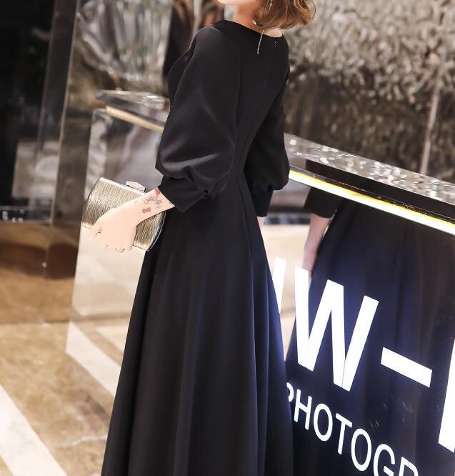 【送料無料】喪服 ワンピース 長袖 きれいめ ハイウエスト Aライン Vネック ブラック フォーマル エレガント シック 20代 30代 40代 ブラック BY-457