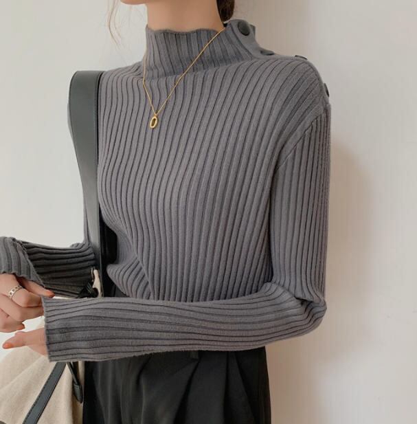 【送料無料】ニット リブニット トップス ハイネック スリム 大人 上品 きれいめ カジュアル シンプル ベーシック ホワイト ブラック グレー モカ ベージュ TP-002R