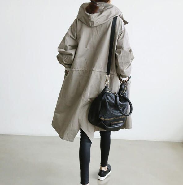 【送料無料】スプリングコート マウンテンパーカー ライトアウター ジャケット オーバーサイズ 大きいサイズ フード付き カジュアル シンプル 大人 ベーシック 無地 30代 40代 50代 カーキ ブラック OU-002R