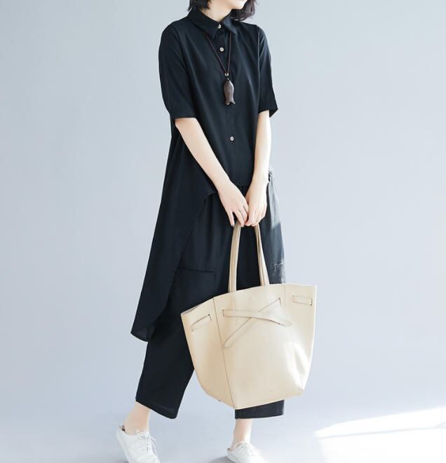 【送料無料】セットアップ おしゃれ リネン ロングパンツ アシンメトリー ハイウエスト 大人 上品 カジュアル シンプル 可愛い 30代 40代 50代 ホワイト ブラック ST-003R
