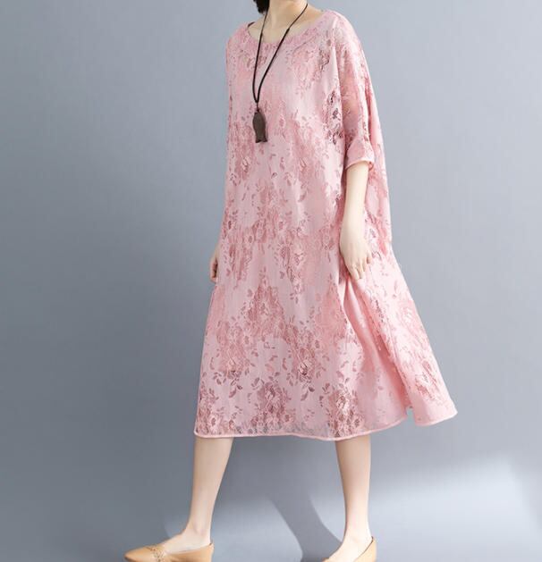 【送料無料】ワンピース 春 きれいめ カジュアル ひざ丈 総レース ゆったり 上品 大人可愛い 体型カバー 30代 40代 50代 ピンク ホワイト ブラック OP-001R