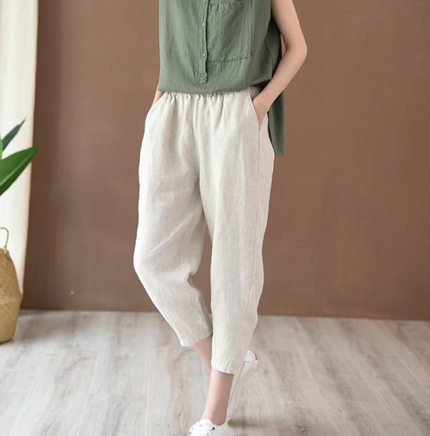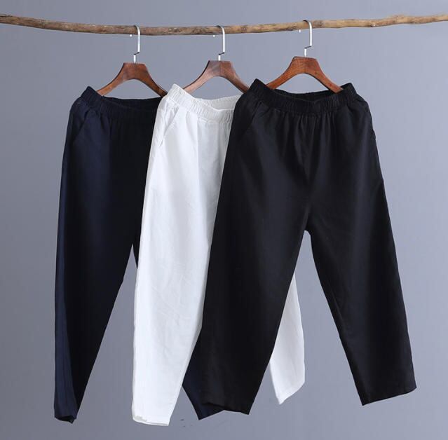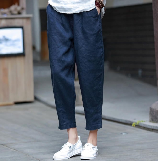 【送料無料】パンツ リネンパンツ ハイウエスト ウエストゴム 無地 カジュアル シンプル 大人 上品 30代 40代 ブラック ネイビー イエロー ベージュ ホワイト PT-001R