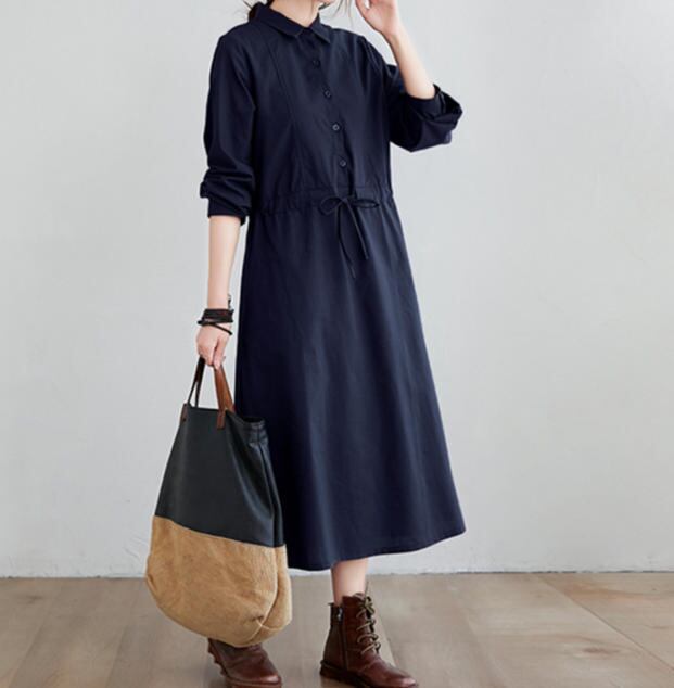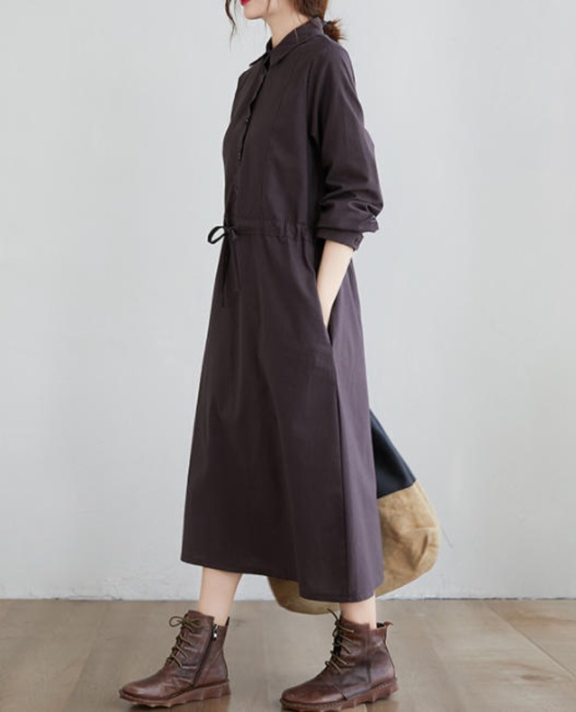 【送料無料】ワンピース 長袖 きれいめ フレア 大きいサイズ ゆったり 無地 カジュアル シンプル 大人 上品 ベーシック 30代 40代 50代 ネイビー ブラウン OP-012R
