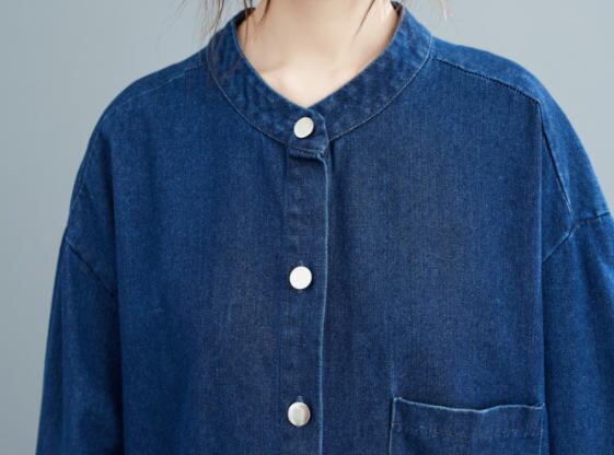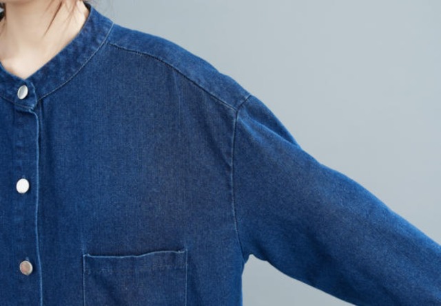 【送料無料】ワンピース 長袖 デニムワンピース ゆったり 大きいサイズ カジュアル 体型カバー シンプル ベーシック 大人可愛い おしゃれ 30代 40代 50代 ブルー OP-014R