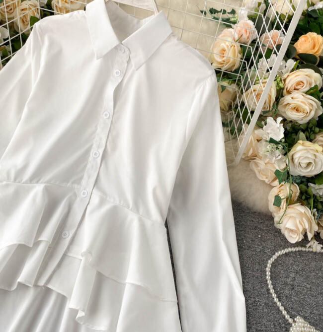 【送料無料】シャツワンピース ロング 春 白 長袖 ロングシャツ フレア Aライン ハイウエスト 斜めドレープ 無地 大人 上品 きれいめ カジュアル おしゃれ 30代 40代 ホワイト ブラック OP-017R