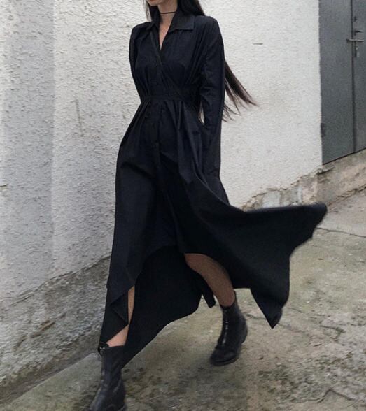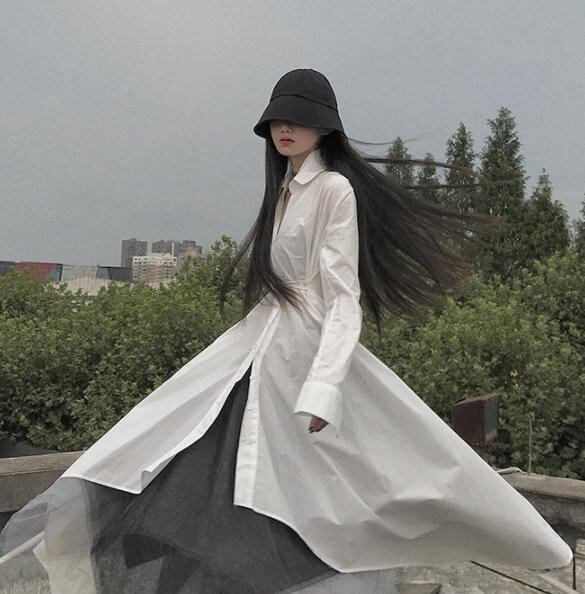【送料無料】シャツワンピース ロング 春 白 長袖 ロングシャツ 大きいサイズ フレア Aライン ハイウエスト 斜めドレープ 大人 上品 きれいめ カジュアル おしゃれ 30代 40代 ホワイト ブラック OP-018R