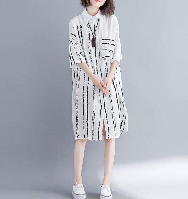 【送料無料】シャツワンピ―ス 春 長袖 大きいサイズ 膝丈 ストライプ 体型カバー ゆったり 大人 きれいめ カジュアル ベーシック シンプル 30代 40代 ホワイト ブラック OP-029R