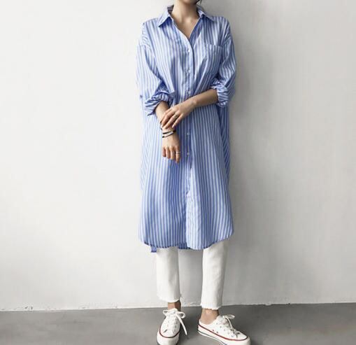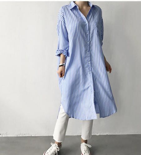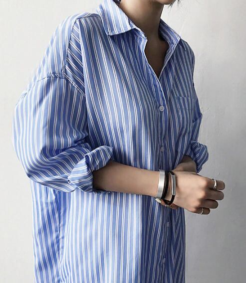 【送料無料】シャツワンピ―ス 春 ロング 長袖 大きいサイズ ストライプ 体型カバー ゆったり 大人 きれいめ カジュアル ベーシック シンプル 30代 40代 ブルー ブラック OP-045R
