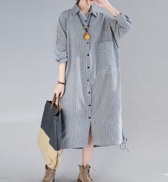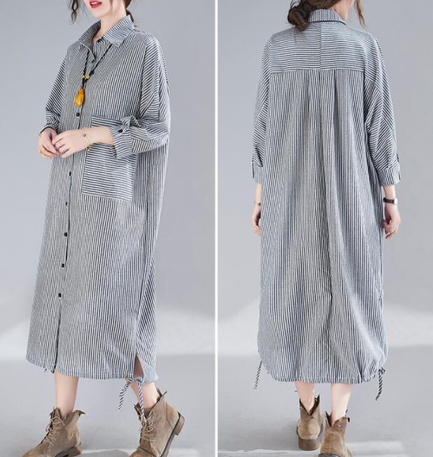 【送料無料】シャツワンピ―ス 春 ロング 長袖 大きいサイズ リネン 体型カバー ゆったり 大人 きれいめ カジュアル ベーシック シンプル 30代 40代 グレー OP-048R