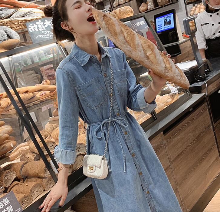 【送料無料】シャツワンピ―ス 春 長袖 大きいサイズ デニムワンピース ウエストリボン 体型カバー ゆったり 大人 きれいめ カジュアル ベーシック シンプル 30代 40代 ブルー OP-050R