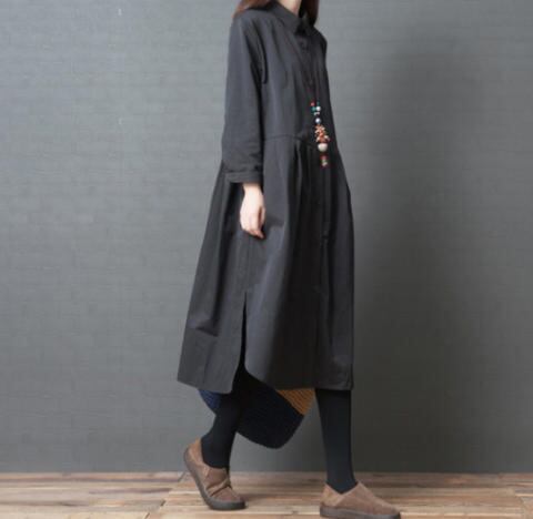 【送料無料】シャツワンピ―ス 春 ロング 長袖 大きいサイズ 体型カバー ゆったり 大人 きれいめ カジュアル ベーシック シンプル 30代 40代 ブラック OP-052R