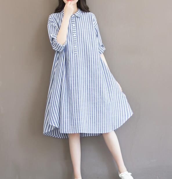 【送料無料】シャツワンピ―ス 春 ロング 長袖 リネン 大きいサイズ ストライプ 体型カバー ゆったり 大人 きれいめ カジュアル ベーシック シンプル 30代 40代 OP-056R