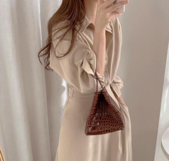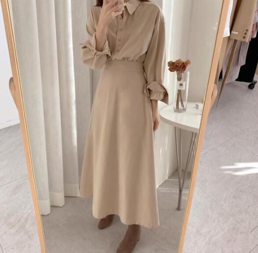 【送料無料】シャツワンピ―ス 春 ロング 長袖 ハイウエスト フレア 体型カバー ゆったり 大人 きれいめ カジュアル ベーシック シンプル 30代 40代 ベージュ ホワイト OP-065R
