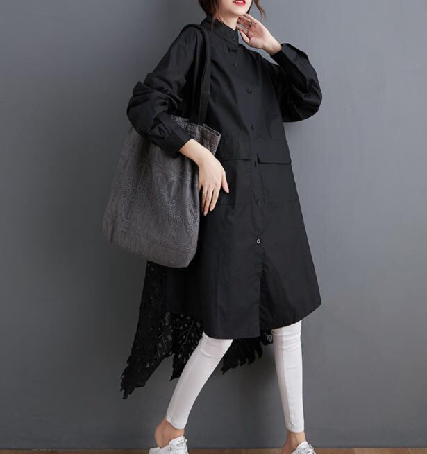 【送料無料】シャツワンピ―ス 春 ロング 長袖 レース 花柄 体型カバー ゆったり 大人 きれいめ カジュアル ベーシック シンプル 30代 40代 ホワイト ブラック OP-067R