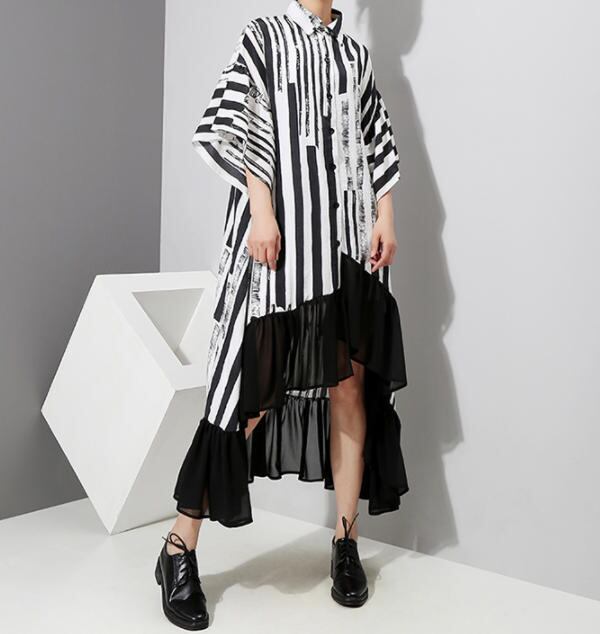 【送料無料】シャツワンピ―ス 春 ロング 大きいサイズ アシンメトリー バイカラー 半袖 体型カバー ゆったり 大人 きれいめ カジュアル ベーシック シンプル 30代 40代 ブラック OP-075R