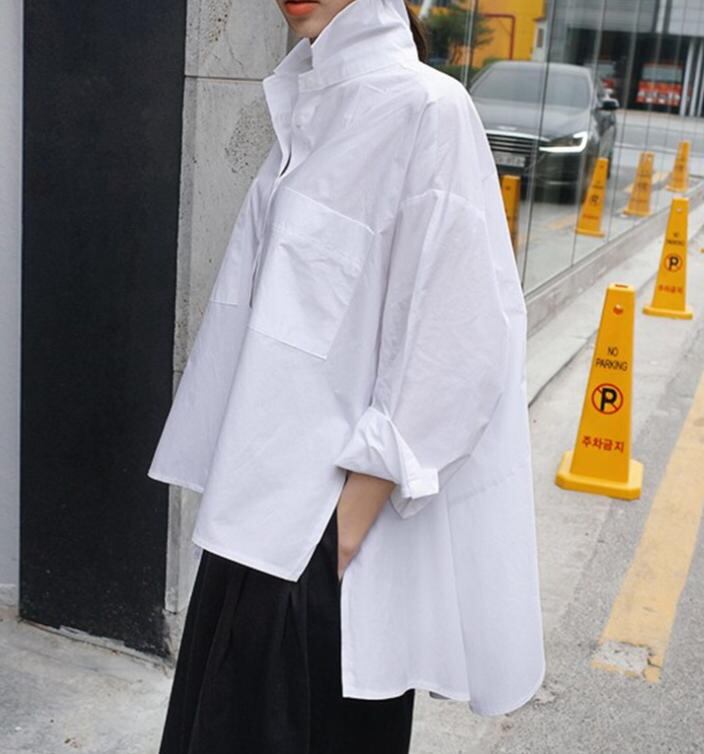 【送料無料】シャツ 長袖 トップス 大きいサイズ アシンメトリー ゆったり 体型カバー 無地 おしゃれ カジュアル 大人 30代 40代 50代 ホワイト TP-015B