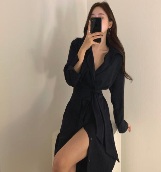 【送料無料】シャツワンピ―ス 春 長袖 膝丈 ウエストマーク 着痩せ 大人 きれいめ カジュアル ベーシック シンプル 30代 40代 ホワイト ブラック ベージュ OP-100B