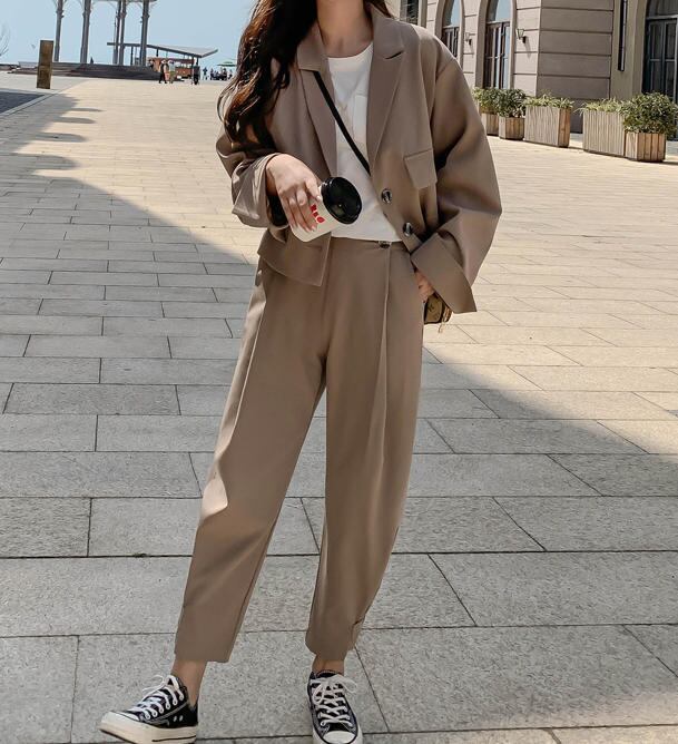 【送料無料】セットアップ おしゃれ パンツスーツ ハイウエスト きれいめ フォーマル 上品 大人 シンプル 30代 40代 50代 ベージュ ブラック ST-004B